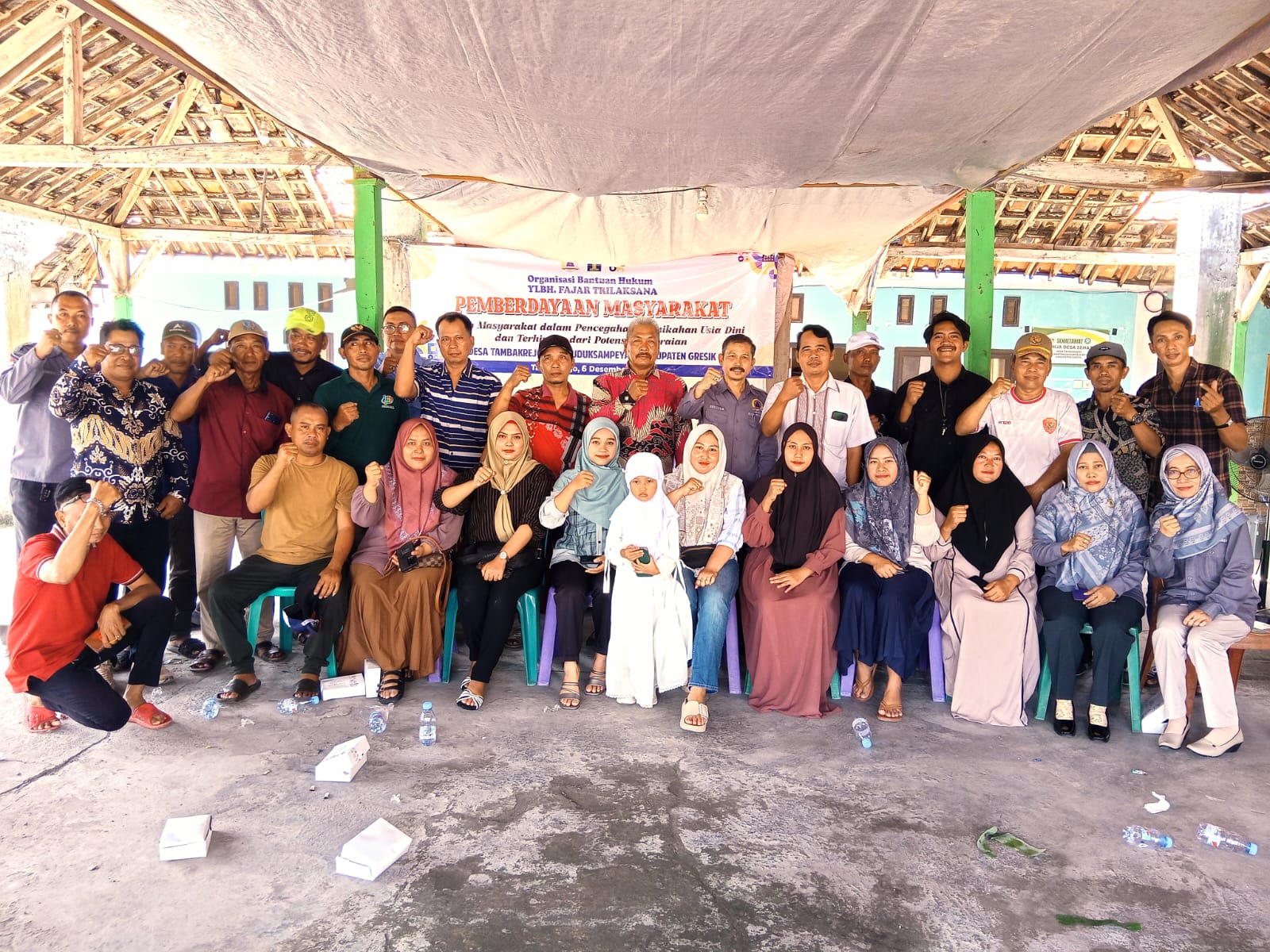 GRESIK, (Kabarjawatimur.com) – Angka perceraian di Kabupaten Gresik tercatat cukup tinggi, yakni mencapai 1.511 perkara pada akhir tahun 2024. Dari data itu sekitar 25 persen diakibatkan faktor pernikahan dini. Sebagai upaya pencegahan, Lembaga Bantuan Hukum (LBH) Fajar Trilaksana menggelar penyuluhan hukum di Desa Tambakrejo, Kecamatan Duduksampeyan, Sabtu (6/12/2025).
