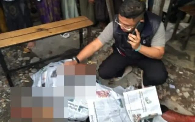 Sosok mayat pria tersebut ditemukan tewas bersimbah darah di depan Warkop Coffee Black dengan luka bacok parah di bagian perut diketahui sekitar pukul 04.15 WIB.