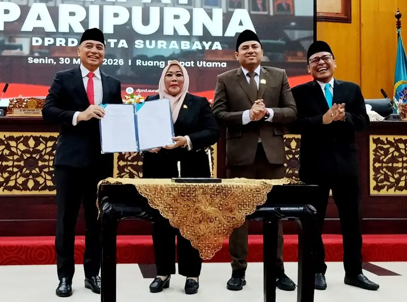 SURABAYA ( Kabarjawatimur.com) – Dewan Perwakilan Rakyat Daerah Kota Surabaya resmi menetapkan Rancangan Peraturan Daerah (Raperda) tentang Hunian Layak menjadi Peraturan Daerah (Perda) dalam Rapat Paripurna yang digelar di Gedung DPRD Surabaya, Senin (30/3/2026).