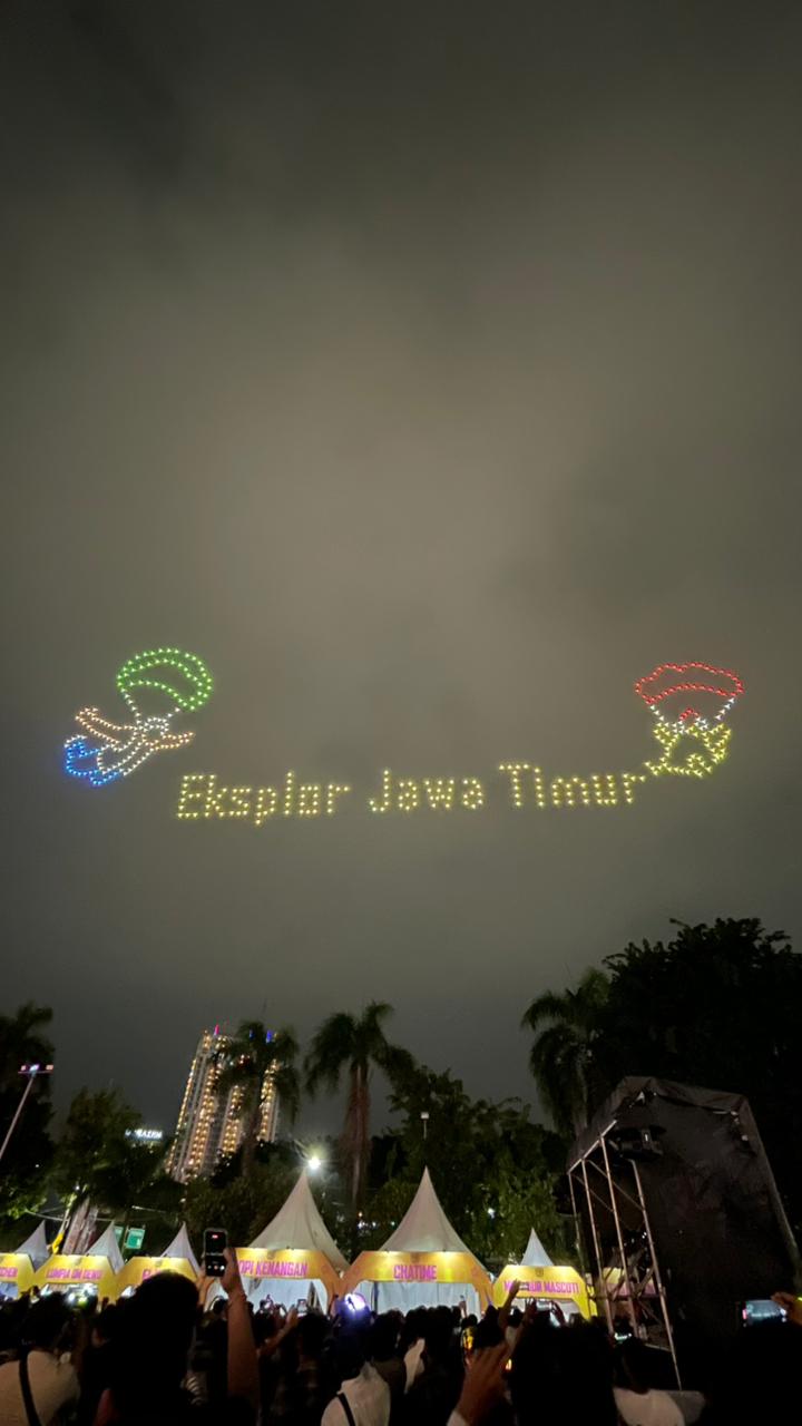 Ribuan warga tampak antusias memadati area sekitar lokasi untuk menyaksikan langsung pertunjukan berbasis teknologi tersebut. Sorak kagum dan tepuk tangan mengiringi setiap perubahan formasi di langit malam Surabaya.