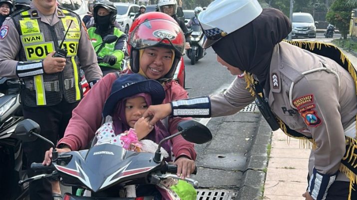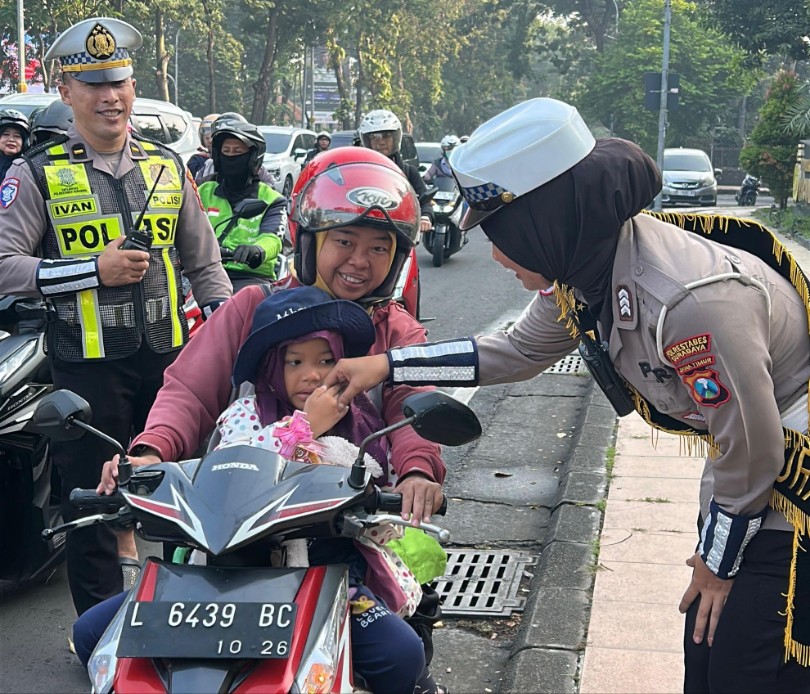 Dalam rangka peringatan hari Kartini, Polwan Satlantas Polrestabes Surabaya mengapresiasi perempuan perempuan hebat di Surabaya yang tetap tertib dalam berkendara.