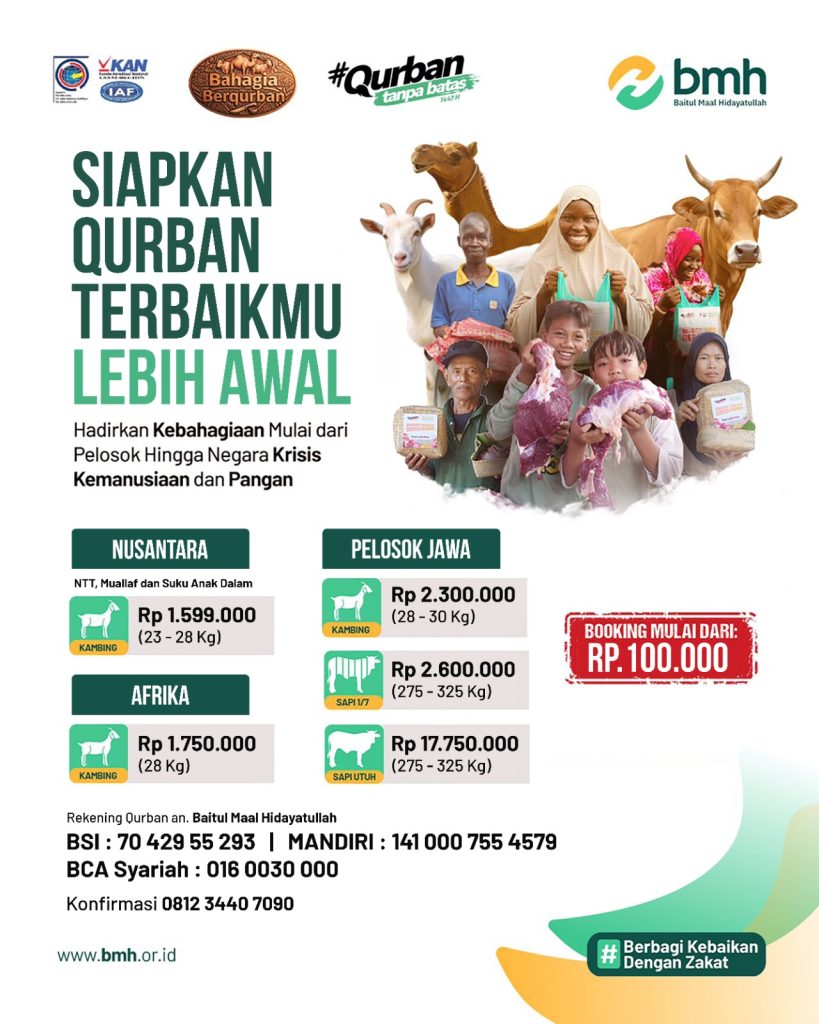 “Kami mengajak donatur serta para dermawan, mari kita bertekad tahun ini bisa berkurban, sesuai dengan kemampuan kita masing-masing melalui BMH,” ujar Karim.